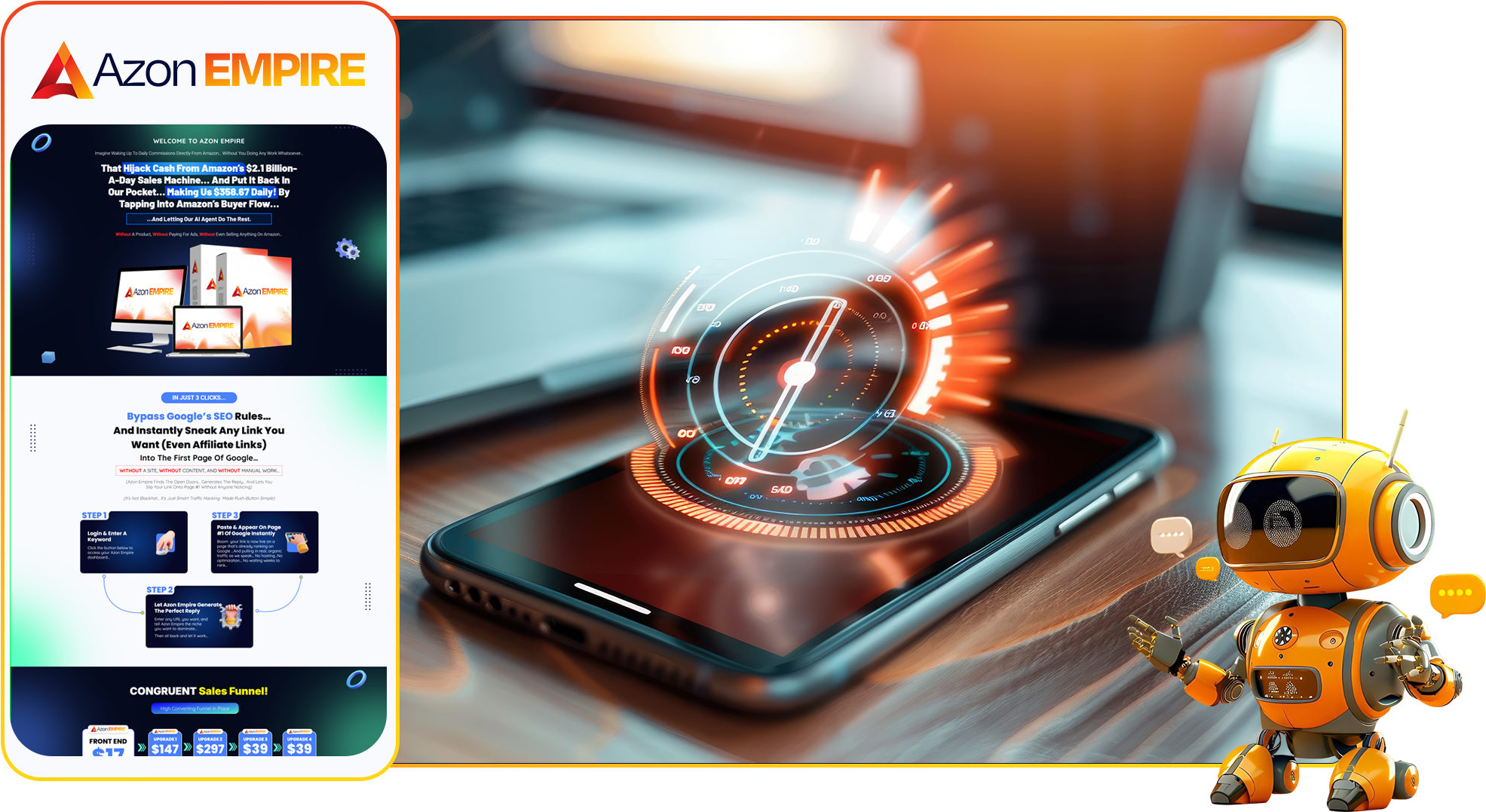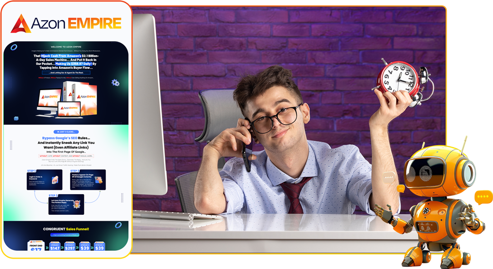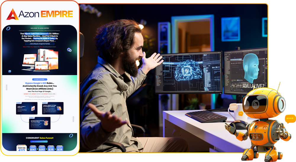 - The AzonEmpire "Self-Running" AI Agent... (Worth $997) - Your own digital worker that finds hidden money gaps while you relax... It does every bit of the thinking so you never have to work again…